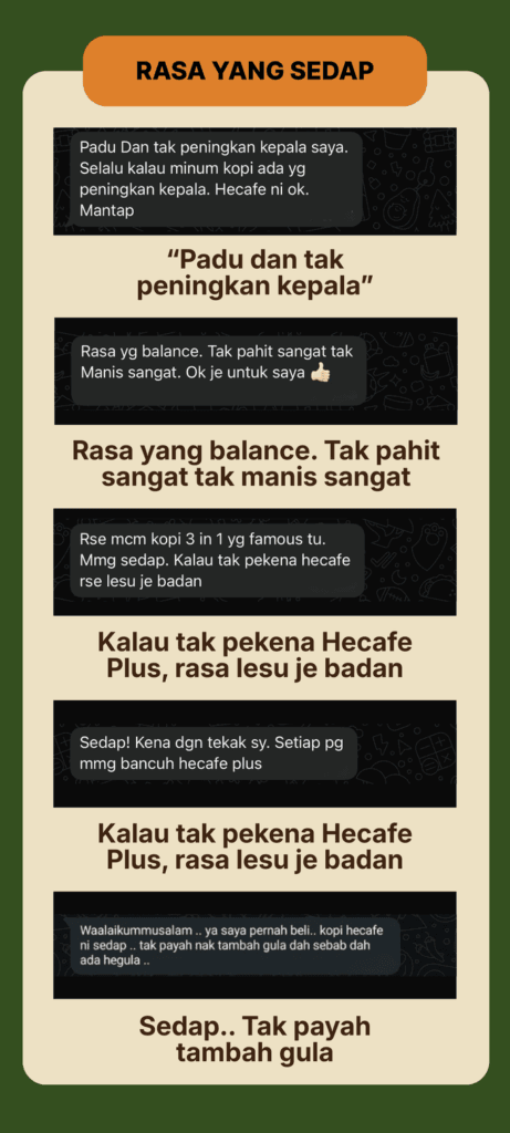 Tak pahit sangat. Rasa smooth & seimbang sebab ada Hegula – tak manis melampau, tak pahit keterlaluan. Ramai customer kami feedback rasa dia sedap 🤎